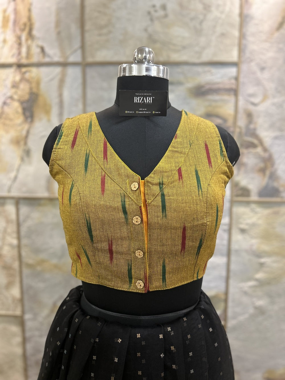 Handloom Ikat Front Button - Mustard