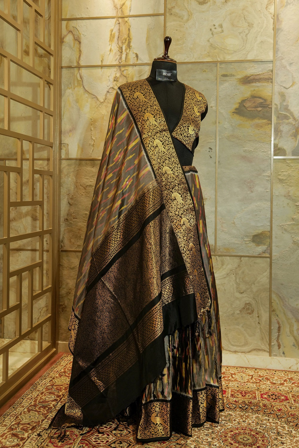 The elegant grey Handwoven pure silk Ikat saree is part of our signature collection. With contrast rich black jacquard border on both sides with bird motifs and Ikat weaving all over body. with tassels on Pallu.