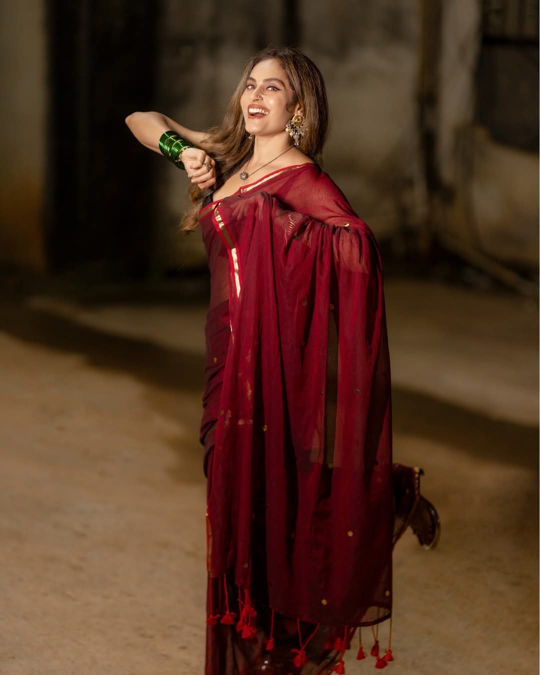 Introducing Sitara Sarees Mul Cotton, a must-have for your summer collection. This vibrant saree features sequins and tassels on the pallu, adding a touch of elegance to the soft, simple cotton. Pair with different blouses and jewelry to create a dramatic and stylish look. Expertly crafted for comfort and trendiness. This saree does not have a blouse piece included.